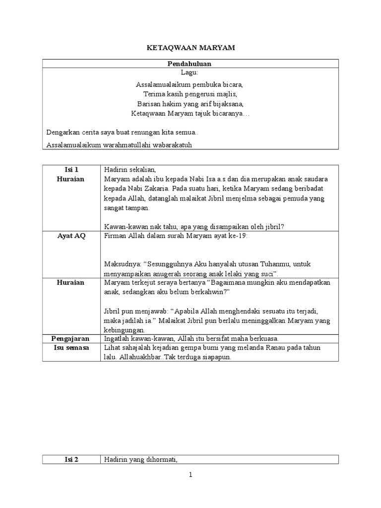 | Baca: Teks Cerita Ketaqwaan Maryam |